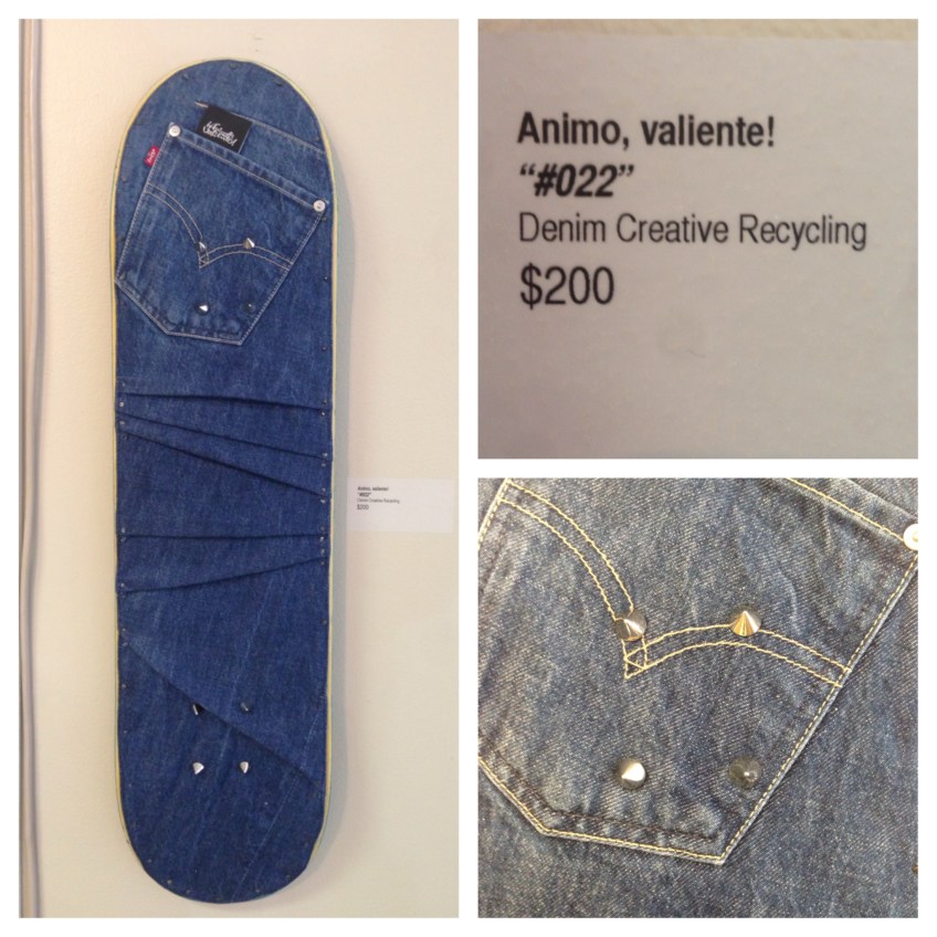 Animo Valiente “022” original art skateboard deck made from recycled denim jeans