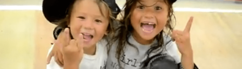 7 and 3 year old Sky and Ocean ripping it up at the skate park.